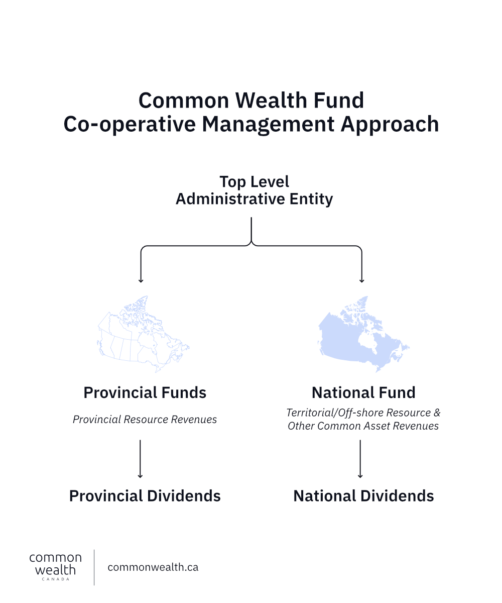 The Common Wealth Fund could be designed with a co-operative management approach that works across federal and provincial jurisdictions, consisting of multiple provincial funds and a federal fund grouped under a single administrative entity. This is a viable model for building a national-scale sovereign wealth fund that benefits all citizens, while respecting the jurisdiction and autonomy of the provinces.