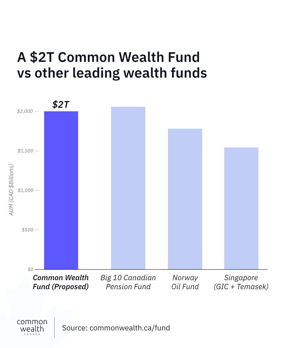 A fund of this size would rank among the world's largest sovereign wealth funds, alongside funds in comparatively smaller economies like Singapore, Norway, and the UAE. Canada’s 10 major pension funds combined already exceed $2 trillion in assets under management. There is no reason we could not build a fund of comparable size that benefits all Canadians.
